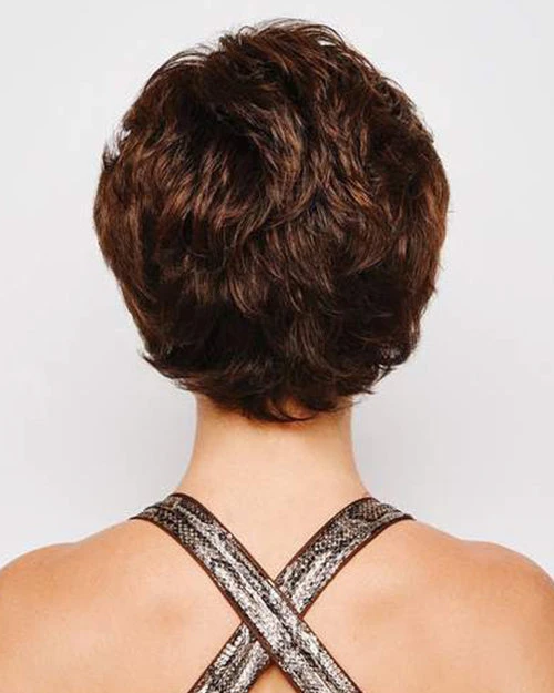 A fresh take on the classic fluff-back silhouette, this short, barely waved cut includes a hand-knotted top and sheer lace front for natural looking, off-the-face styling.
