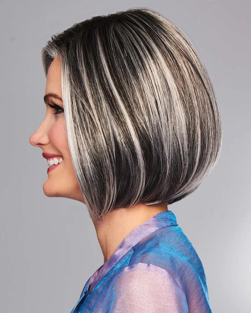 With a hand-knotted monofilament part for varied parting options and a sheer lace front for a life-like, off-the-face styling, this precision crafted below-the-chin page includes sides that gently graduate up to a collar length nape.