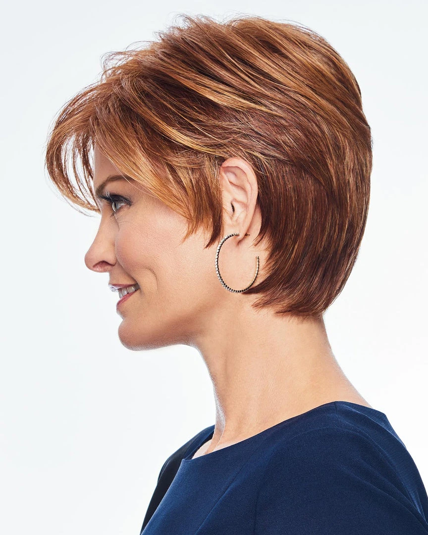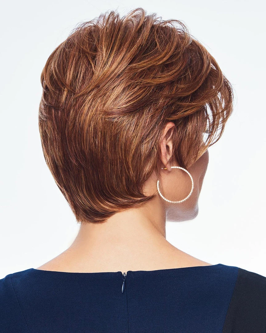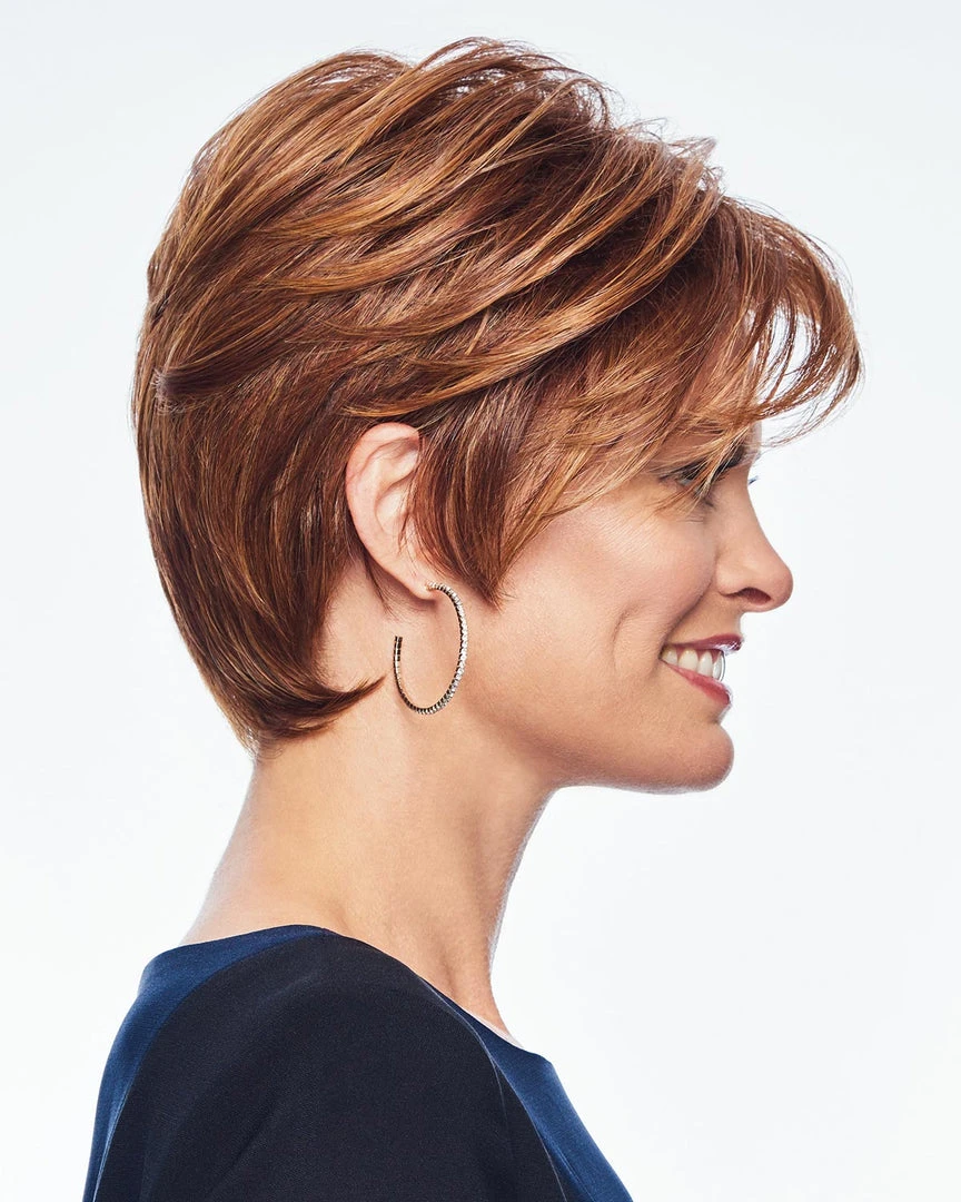 The perfect choice when a short cut with tons of layered movement is desired. Loose and light layers make for a fresh and tousled silhouette that can be worn forward onto the face, swept away, or casually tucked behind the ears. A feather-cut nape adds to an overall feel of femininity.