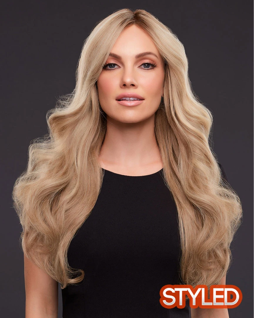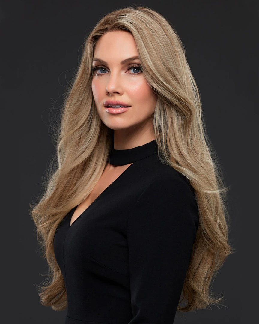 With extra long layers of luxurious human hair plunging nearly to the waist, this style’s hand-tied, light-density cap and SmartLace front create stunning movement and natural verisimilitude.