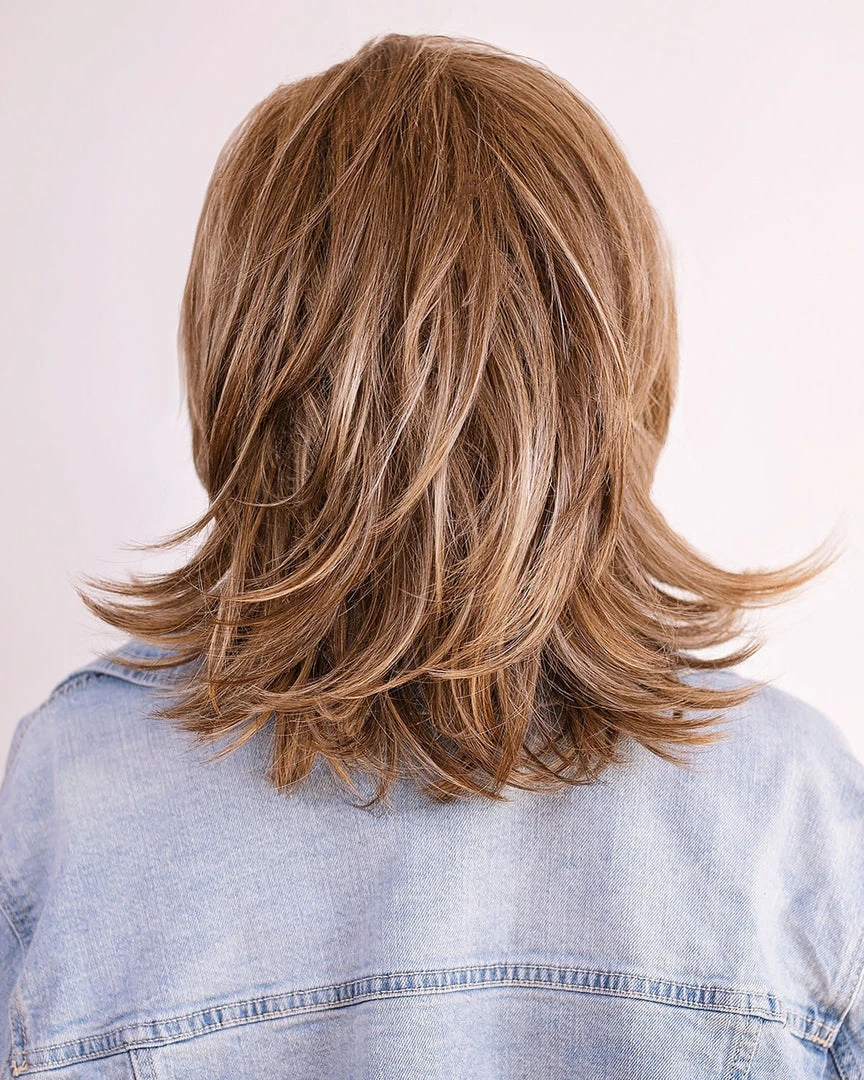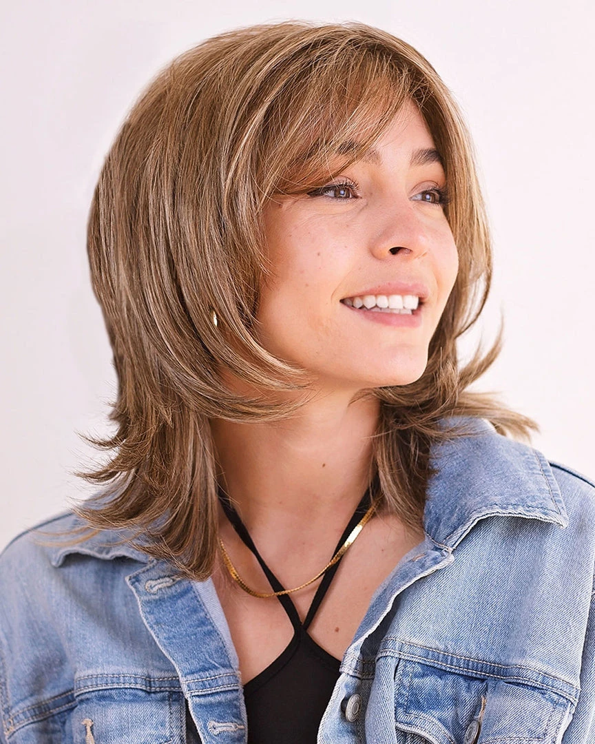 With shoulder-grazing layered Nicki, you can create truly unparalleled looks. Shoulder length Lob cut suits every face shape and can be tailored to any situation from when you need a chic and sophisticated style for work, to a playful date night look. Layers are a great way to add body, thickness, movement, and dimension. With curtain bangs and textured ends. Style to frame your face or off to the side to show off the natural hairline with our RTW Lace Front technology or just an effortless shake-up. This shag looks amazing with ease of styling.