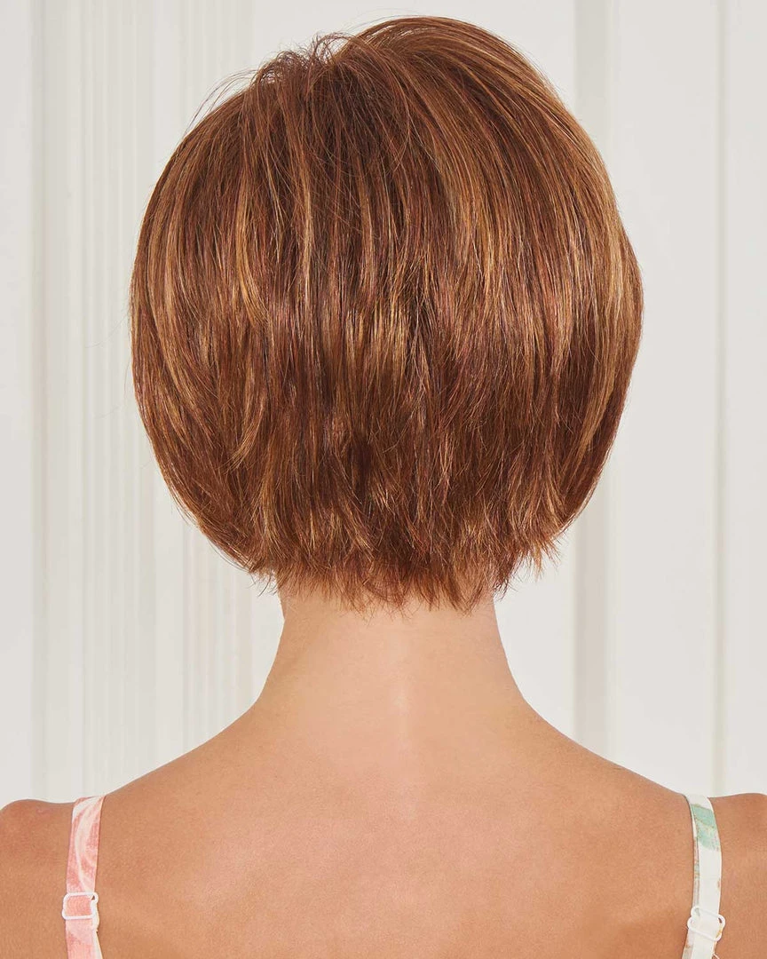Fall in love with Spring Romance from Eva Gabor. This easy-to-wear chin-length wig throws a modern spin on a classic textured shag style. With its tapered ends and perfect razor-cut layers, this wig is edgy yet soft thanks in part to its charming eyelash bang. Style them as is or away from your face for optimal charm. The comfortable low-density lace front wig provides an airy feel in the summer months.