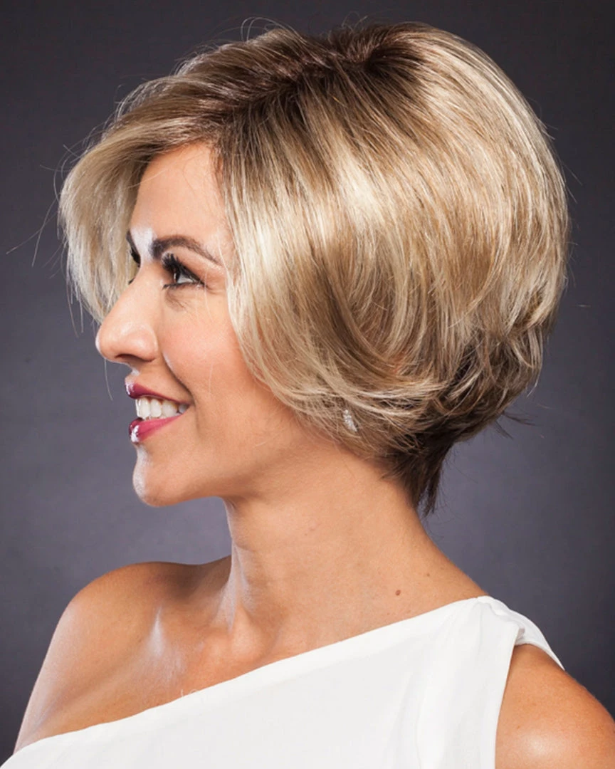 Soft bangs, face framing layers, easy to style with plenty of volume.
