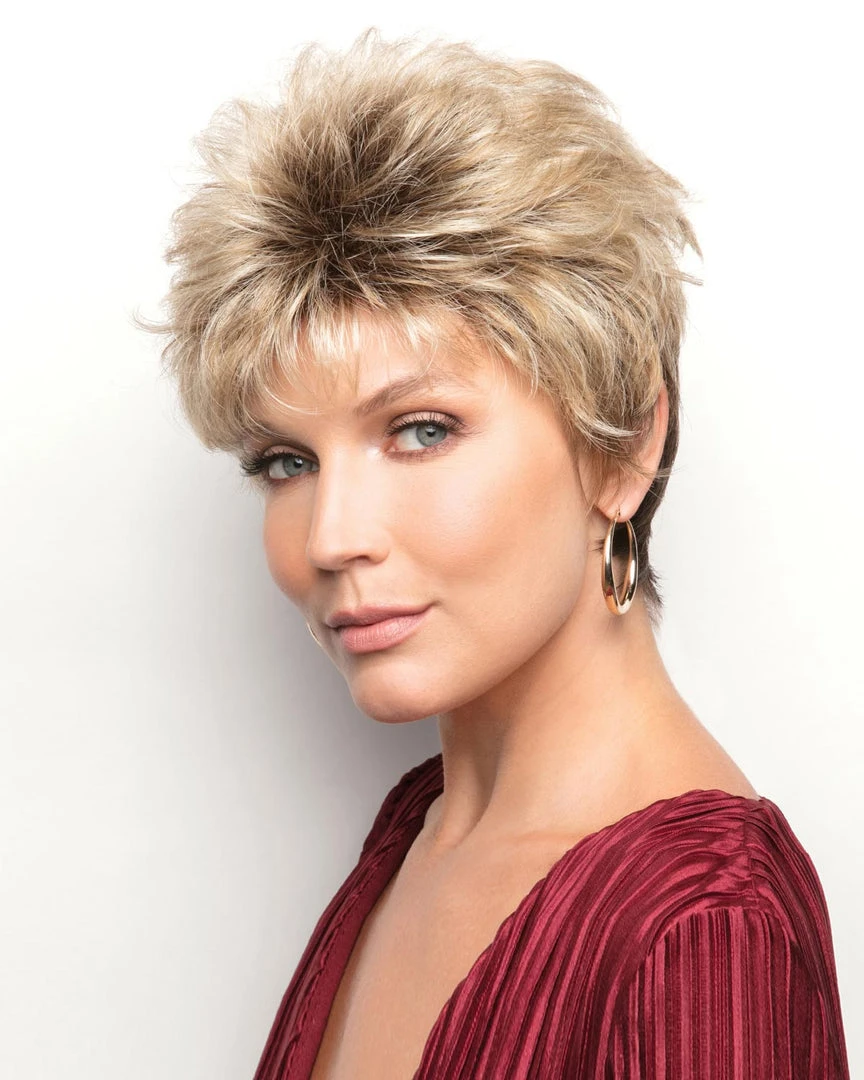 Overall point-cut layers combine to make a bold statement in this short “edgy” cut.