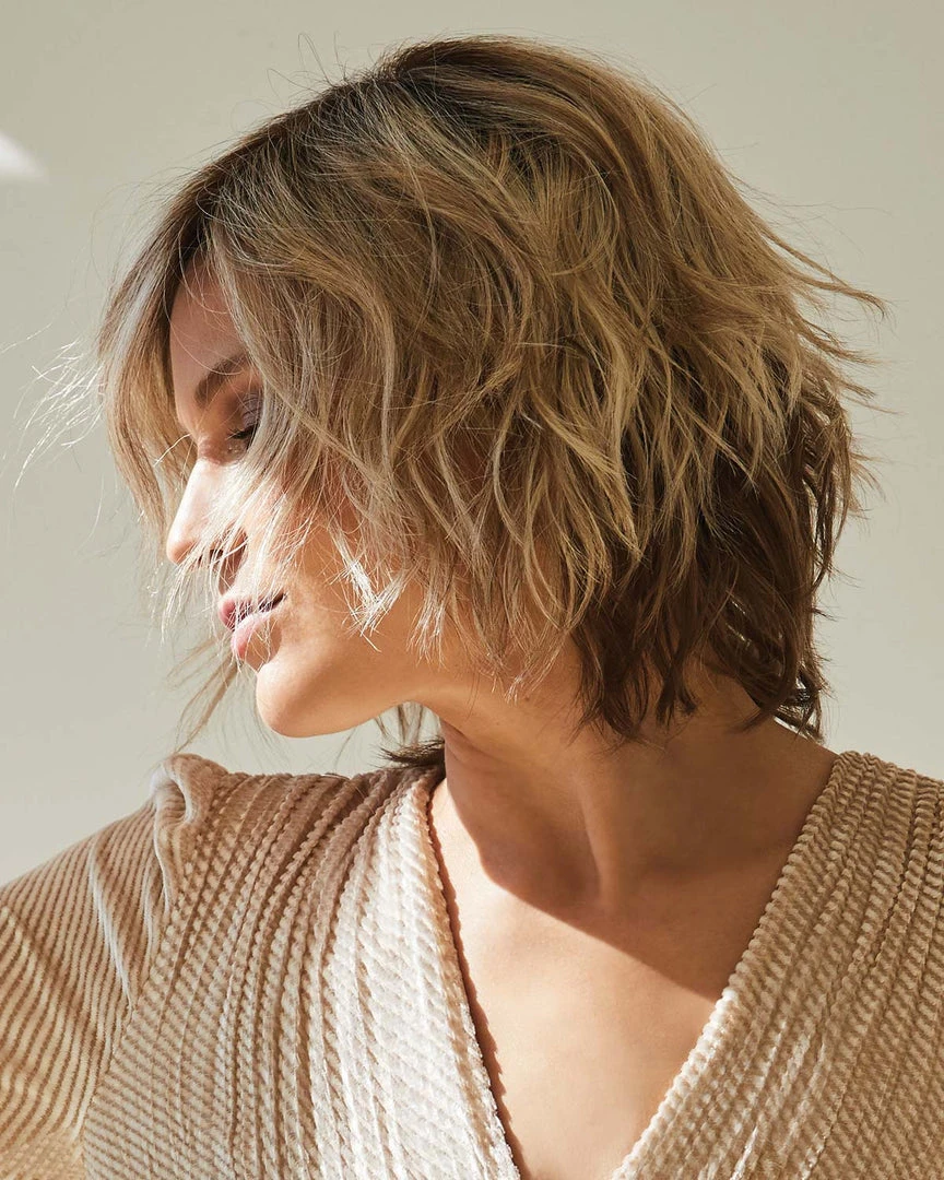 Shaggy cut with salon finish beach wave curls add sex appeal to both males and females. Featuring a new lace front mono-part cap.